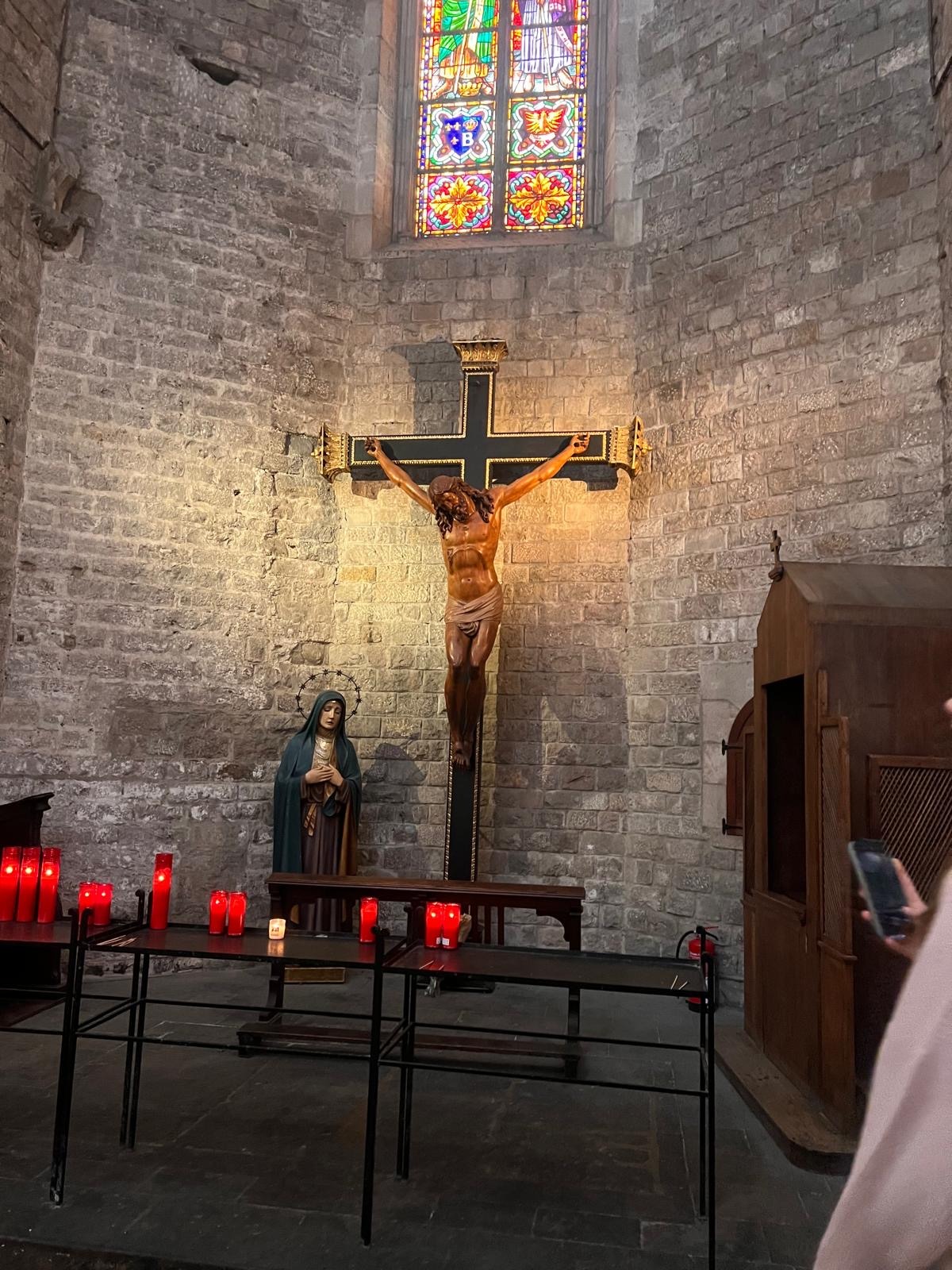 Unser erster Stop im Barrio Gótico war eine Kirche Namens St. Maria del Mar, deren schöne Architektur unsere Vorfreude auf die Sagrada Familia nur noch größer machte. Anschließend gingen wir durch die bunte Altstadt und lernten einige Traditionen Kataloniens kennen, wie die „Caganers“, die in der Weihnachtszeit mit in die Krippe gestellt werden um den Boden für das neue Jahr zu „düngen“. – Verrückt, aber besonders, nicht wahr?