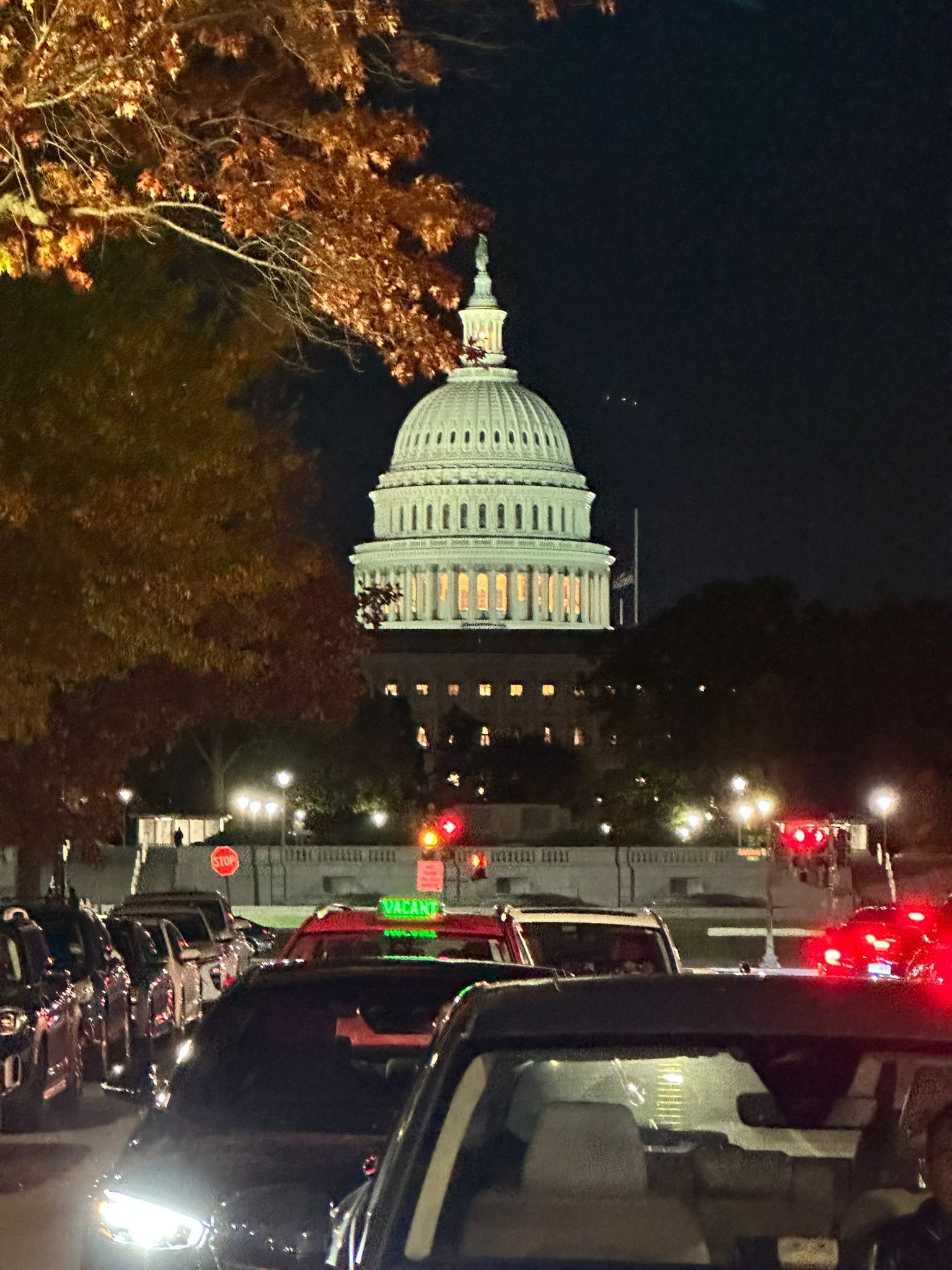 Weniger erfreulich: wegen des government shutdowns waren alle Museen geschlossen. Statt Smithsonian also eine fünfstündige Hop-on-Hop-off-Tour – ein Crashkurs in amerikanischer Hauptstadtgeschichte im Vorbeifahren. Am Ende führte uns der Weg zurück zur Union Station, die sich zwar als praktische, aber eher unspektakuläre Zwischenstation erwies. Die meisten von uns nutzten die Zeit dort, um sich kurz auszuruhen oder wieder etwas zu essen – denn viel zu entdecken gab es nicht. Manche bestiegen die Gebäude in der Umgebung und genossen den view auf das abendliche Washingon.