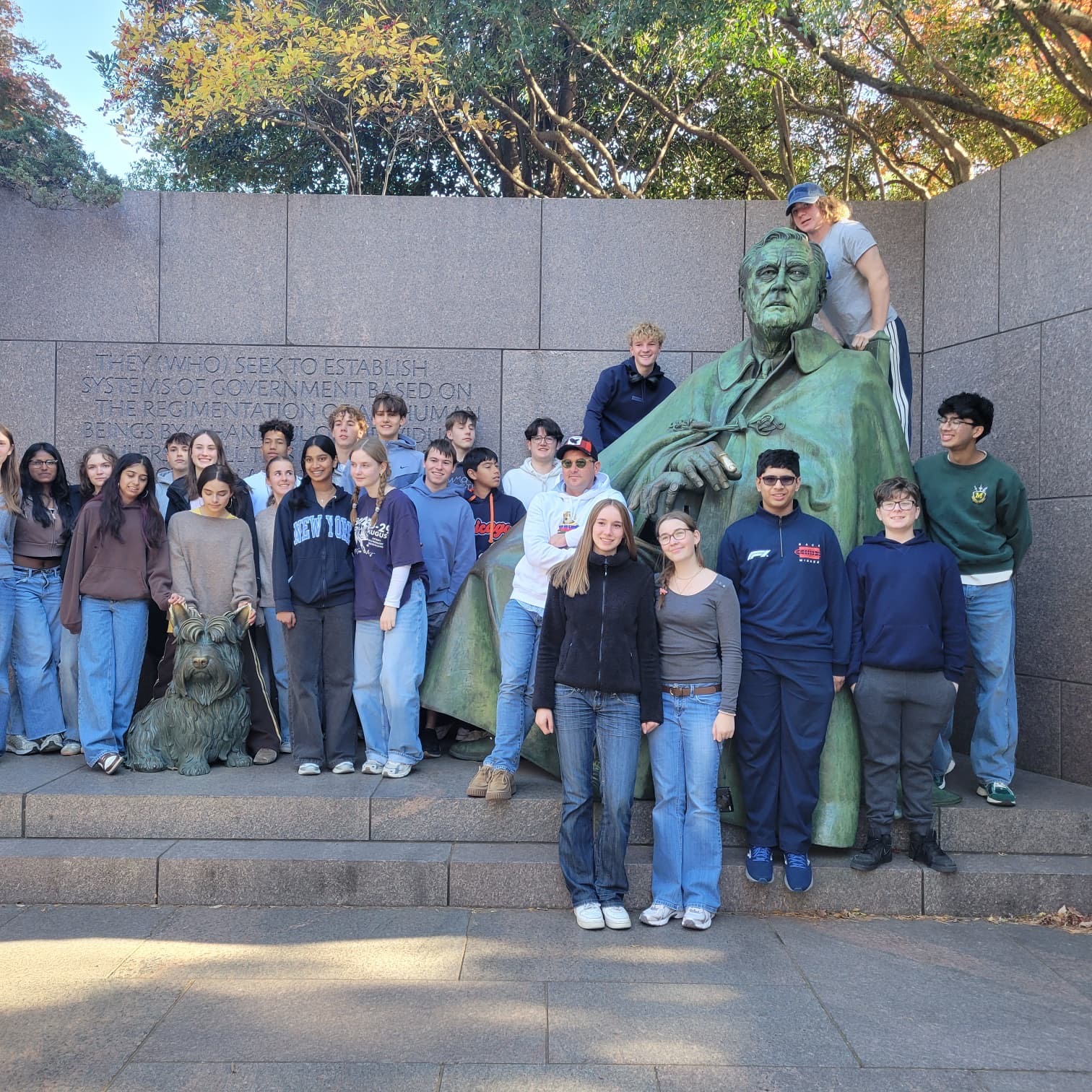 Ein goldener Herbsttag, eine gut gelaunte Austauschgruppe und die Hauptstadt der USA – bessere Voraussetzungen hätte unser Ausflug in der dritten Woche Anfang November (!) kaum haben können. Schon die Anreise mit dem Zug von Princeton Junction nach Washington war eine positive Überraschung: pünktlich, schnell und bequem. In D.C. angekommen, stiegen wir nahtlos in ein klassisch-amerikanisches Sightseeing-Programm ein: erst stärken, dann staunen!