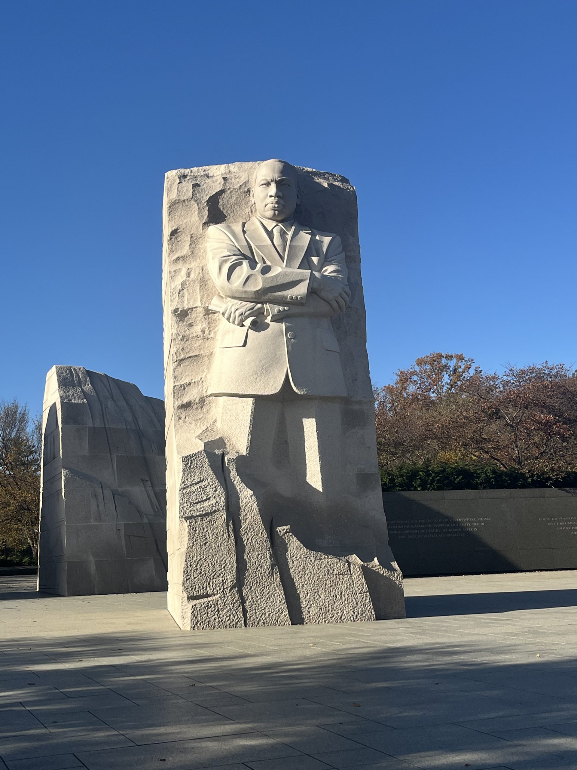 Ein Reisebus chauffierte uns von Memorial zu Memorial, und wir hüpften munter hinein und hinaus, um die Monumente zu fotografieren, zu bestaunen und – natürlich – Instagram-tauglich festzuhalten. Gleich zu Beginn bekamen wir das Weiße Haus zu Gesicht, wenn auch nur aus der respektvollen Distanz der Touristenmeile. Teile waren versperrt aufgrund der jüngst begonnenen Baumaßnahmen für den neuen ‘ballroom’. ‘Taugliche group pictures’ waren Pflichtprogramm, auch vorm Capitol, das wir aus sicherer Entfernung betrachten konnten. Ansonsten war die Stadt wie leergefegt.