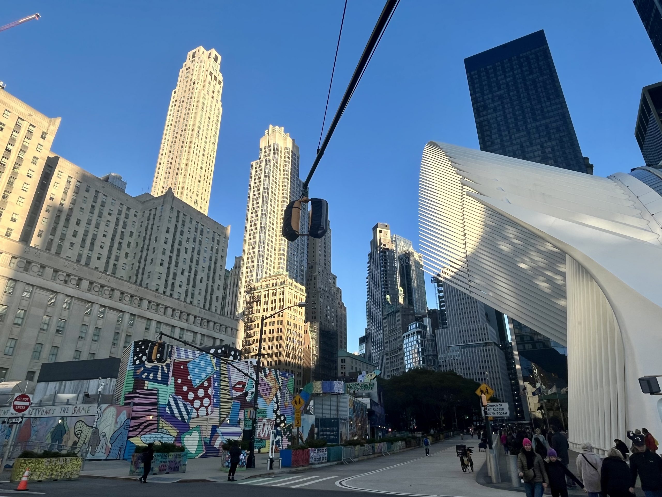 Zum verspäteten Mittagessen machten wir uns auf den Weg zur Wall Street und zum Broadway, wo wir bei Shake Shack köstliche Burger genossen 😋– ein echter New Yorker Klassiker! Gut gestärkt besuchten wir danach das beeindruckende 9/11 Memorial, das uns alle sehr berührte. Die Stille und die Atmosphäre dieses Ortes erinnerten uns eindrucksvoll an die Ereignisse, die New York und die ganze Welt geprägt haben.