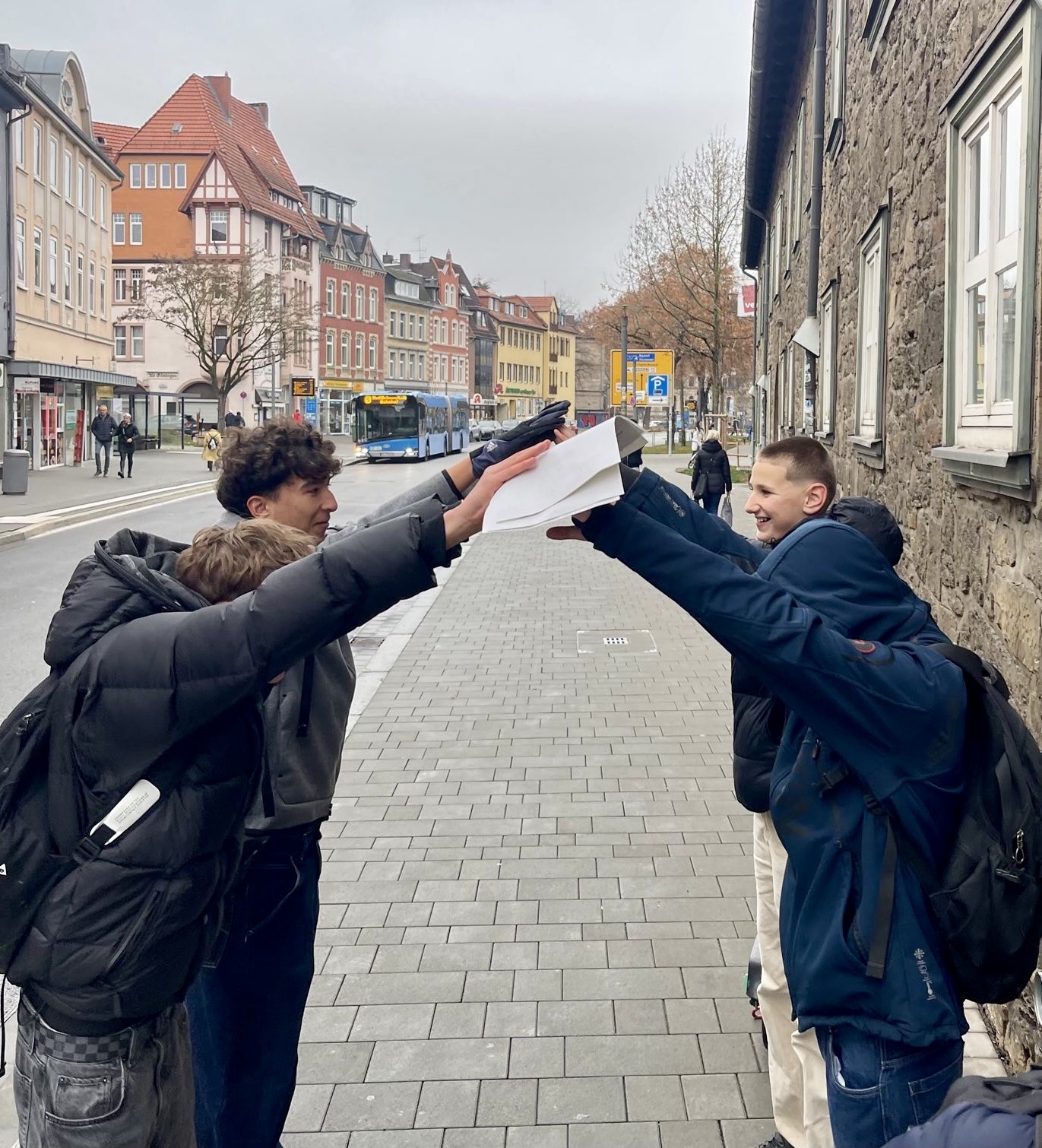 Pünktlich mit dem ersten Schnee ist am Montag unsere Austauschgruppe aus Amiens angekommen. Den ersten Tag haben wir nach einem gemeinsamen Frühstück und einer Begrüßung durch Herrn Merkel mit der Erkundung der Innenstadt und des Weihnachtsmarktes verbracht. Am Nachmittag lernten wir uns bei einigen Challenges in Kleingruppen besser kennen, bevor heute die ersten Hospitationen im Unterricht stattfinden.