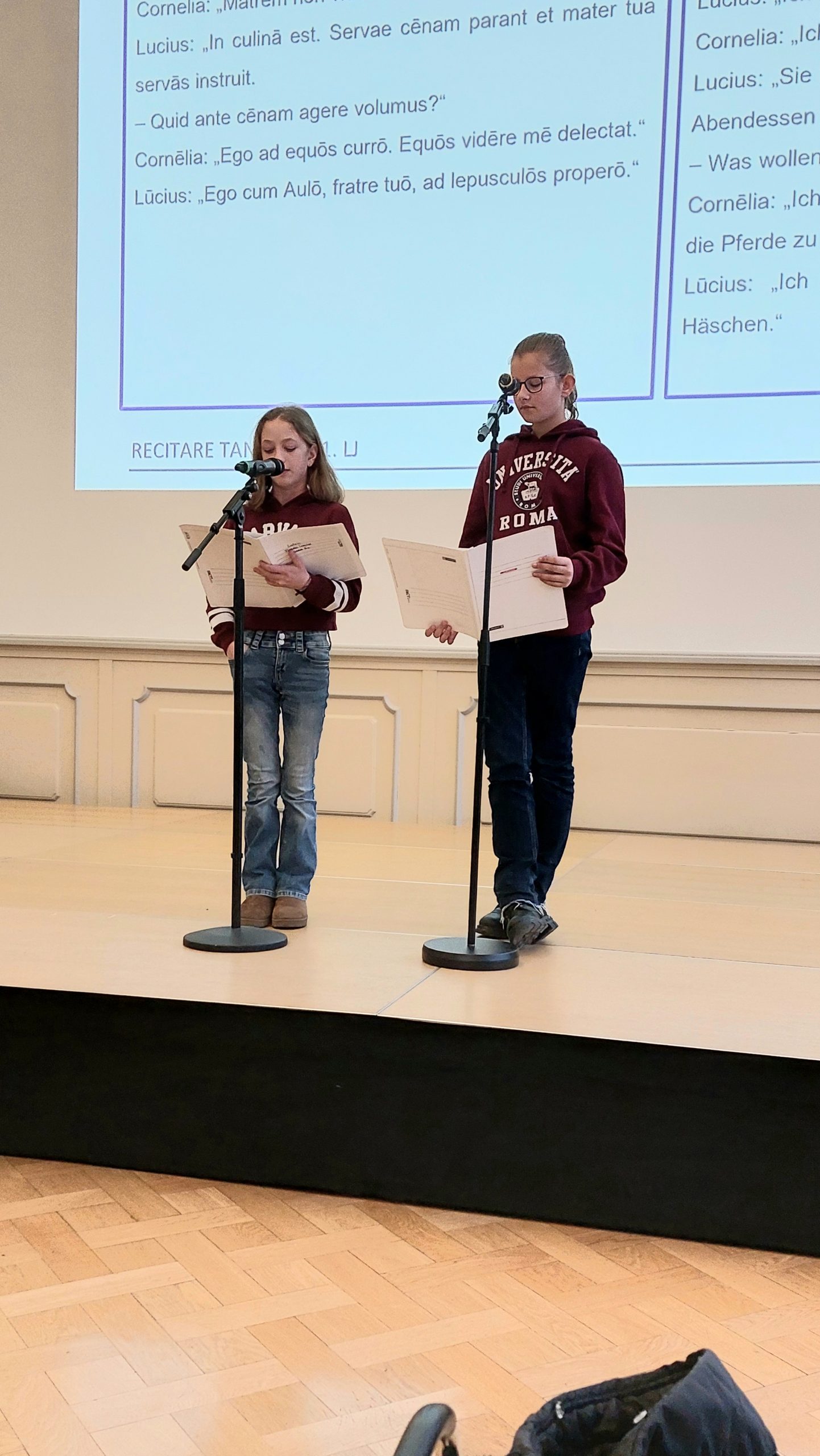 Zwölf MPG-Schüler*innen des 6. und 7. Jahrgangs haben am Vorlesewettbewerb Latein am Freitag, dem 16.01.2026 im Adolf-von-Trott-Saal in der früheren Mensa der Universität am Wilhelmsplatz teilgenommen. Der Wettbewerb wurde vom YLAB in Kooperation mit der Georg-August-Universität Göttingen organisiert. Vorgetragen wurden kurze lateinische Texte in Einzel- und Tandemvorträgen, aufgeteilt in Jahrgang 6 und 7. So gab es insgesamt 4 Kategorien.