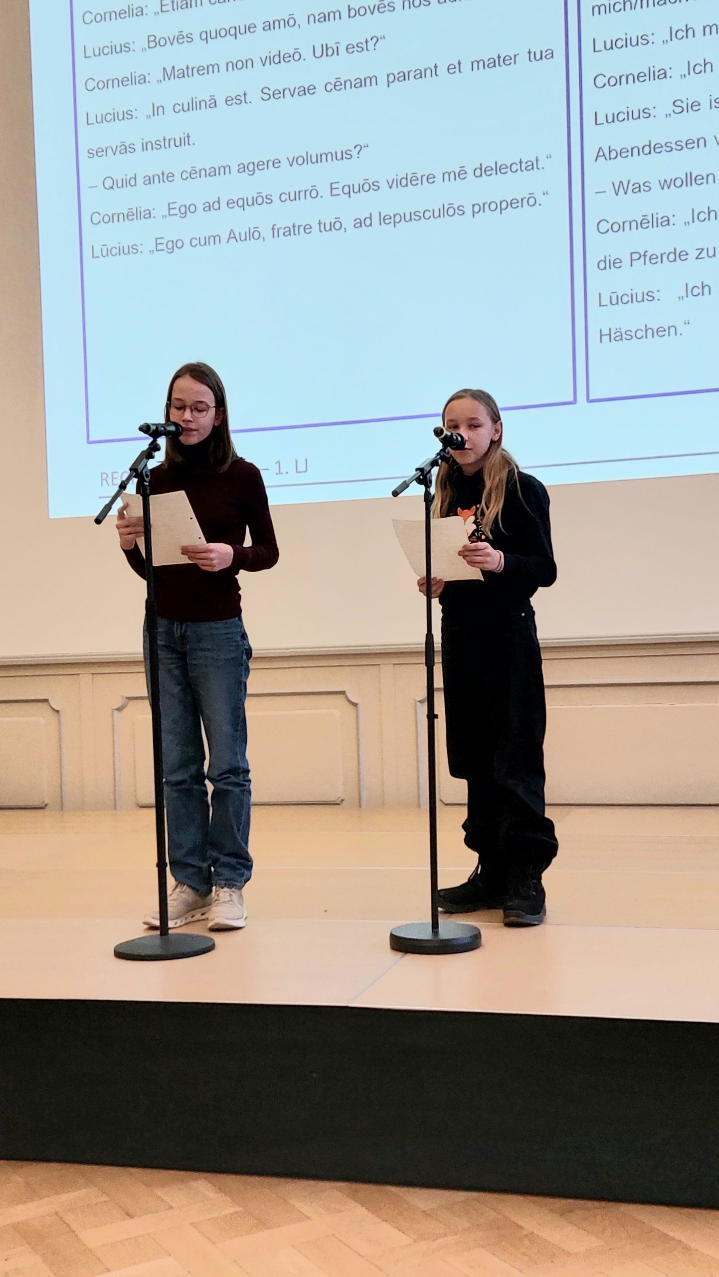 Auch die drei anderen Tandems des MPG, Frieda Kecke & Alexa Lange, Marie Preisner & Ida Eckstein sowie Leah Frijters & Emma Galinsky haben sich hervorragend präsentiert und können stolz auf ihre sehr gelungenen Lesevorträge sein.