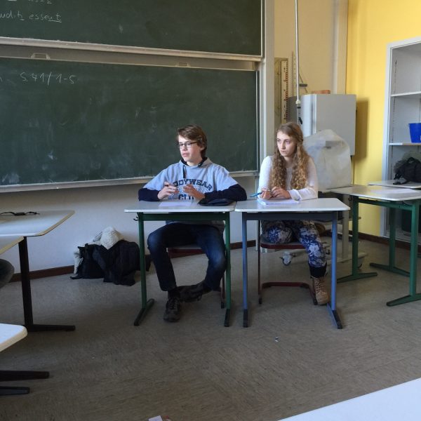 Aus den beiden Qualifikationsrunden zur Streitfrage „Soll der Samstagsunterricht wieder eingeführt werden?“ gingen Melina Scherf und Max Blessin (beide 9e1) sowie Arthur Berns und Viviana Schwiedernoch (beide 9l) als beste Debattanten hervor. Nach einer kurzen Vorbereitungszeit war die Spannung groß und die Finaldebatte zur Frage „Sollen alle Schülerinnen und Schüler des 9. Jahrgangs des Max-Planck-Gymnasiums dazu verpflichtet werden, sich für Flüchtlingskinder zu engagieren?“ begann. Alle Schülerinnen und Schüler zeigten sichere Sachkenntnisse, somit mussten Gesprächsfähigkeit, Ausdrucksvermögen und Überzeugungskraft den Ausschlag geben. Die Debatte war auf einem guten Niveau, zumal als es darum ging, das wichtige Engagement für Flüchtlingskinder in unserer Region gegen den Aspekt des Zwangs abzuwägen.