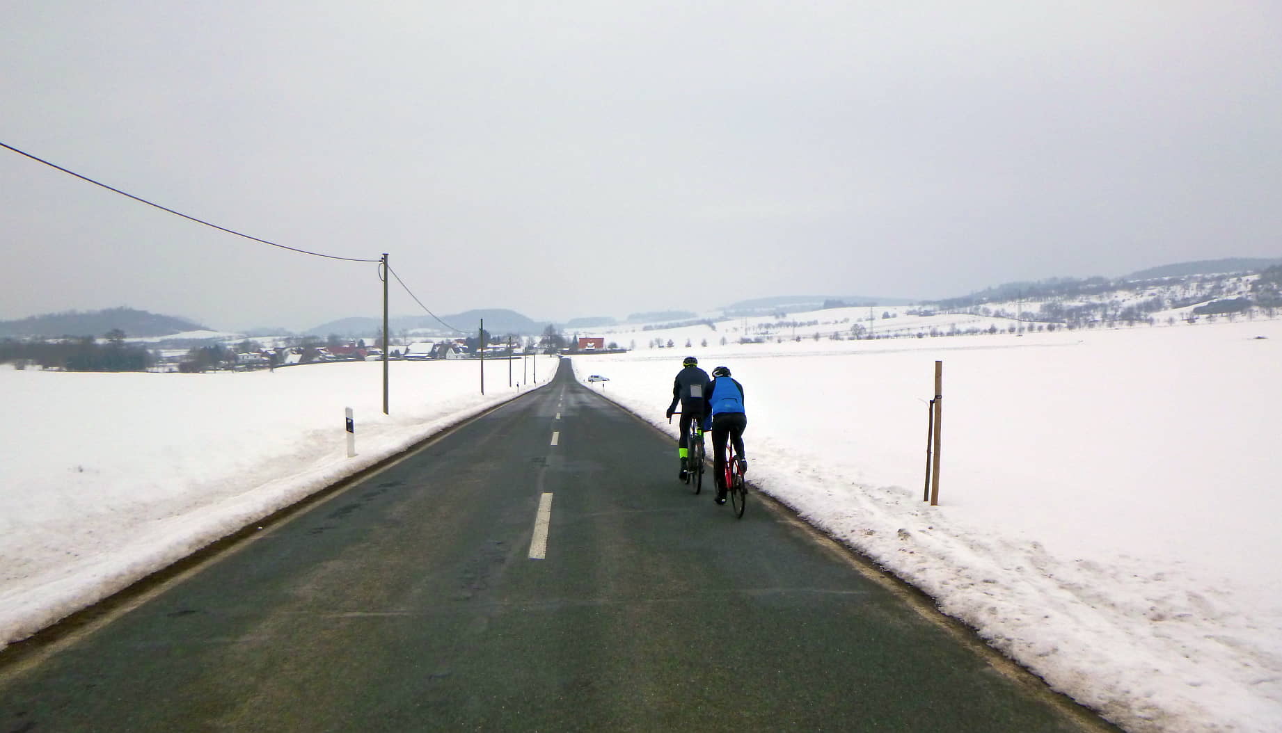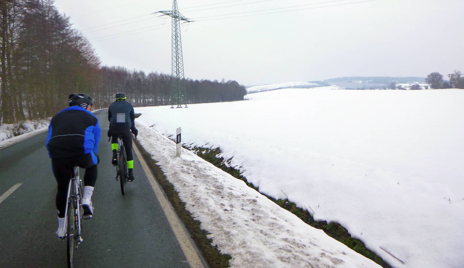 Zurück in Göttingen gab es nackte Waden, offensichtlich genießen nicht nur Radfahrende den Winter. Denn die Landschaft mit ihrem blendenden Weiß trotz Hochnebel war zauberhaft!