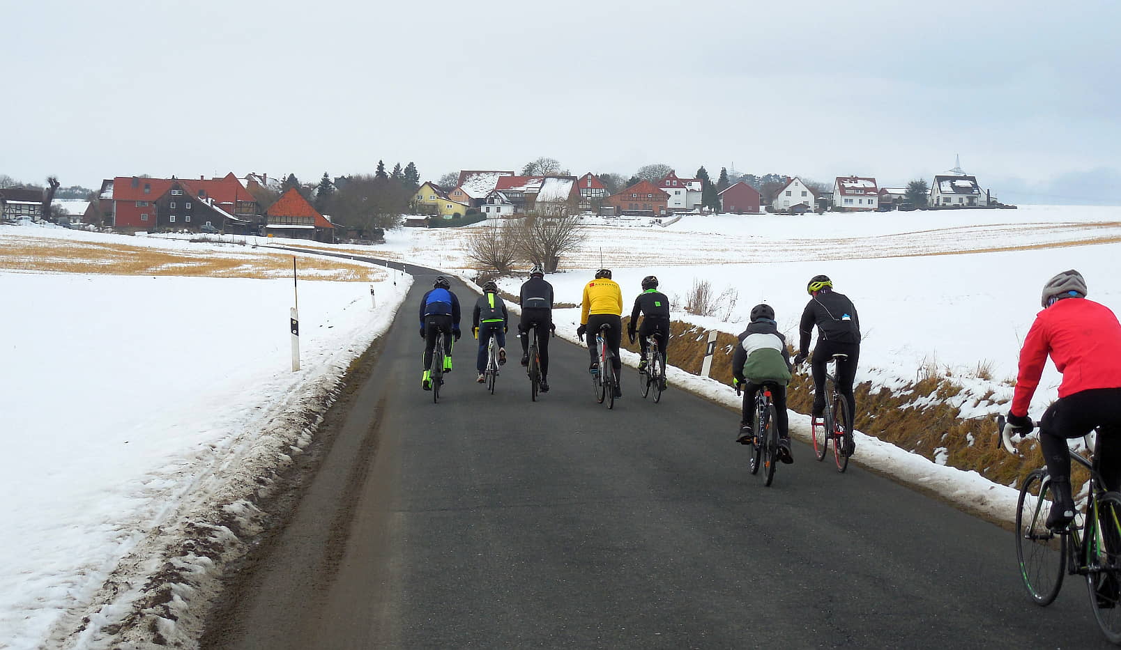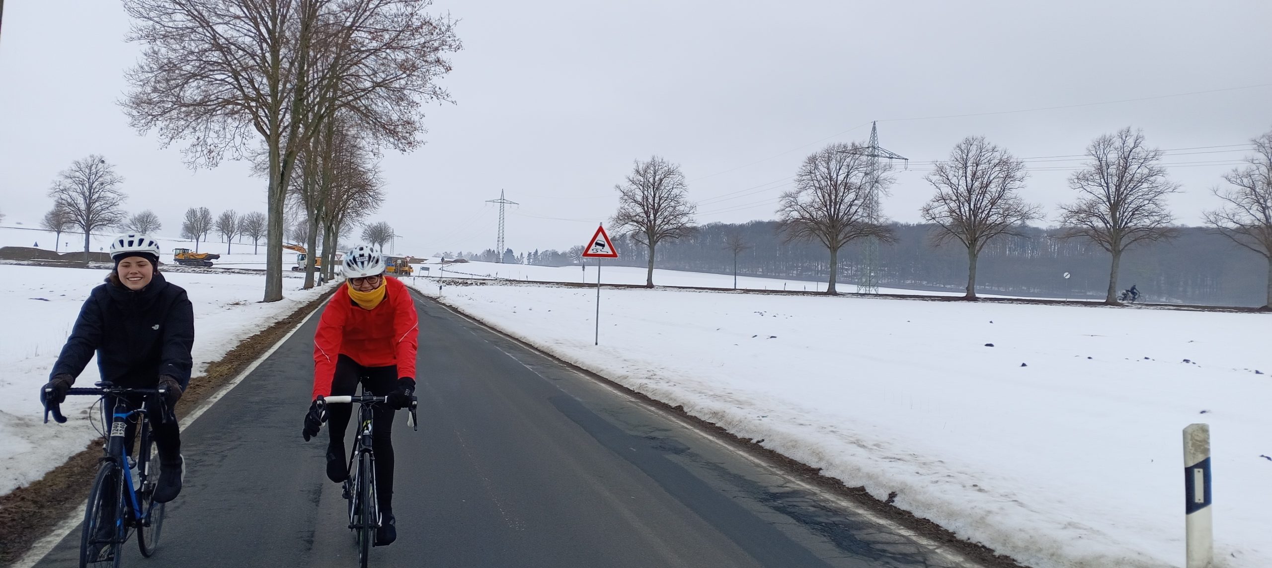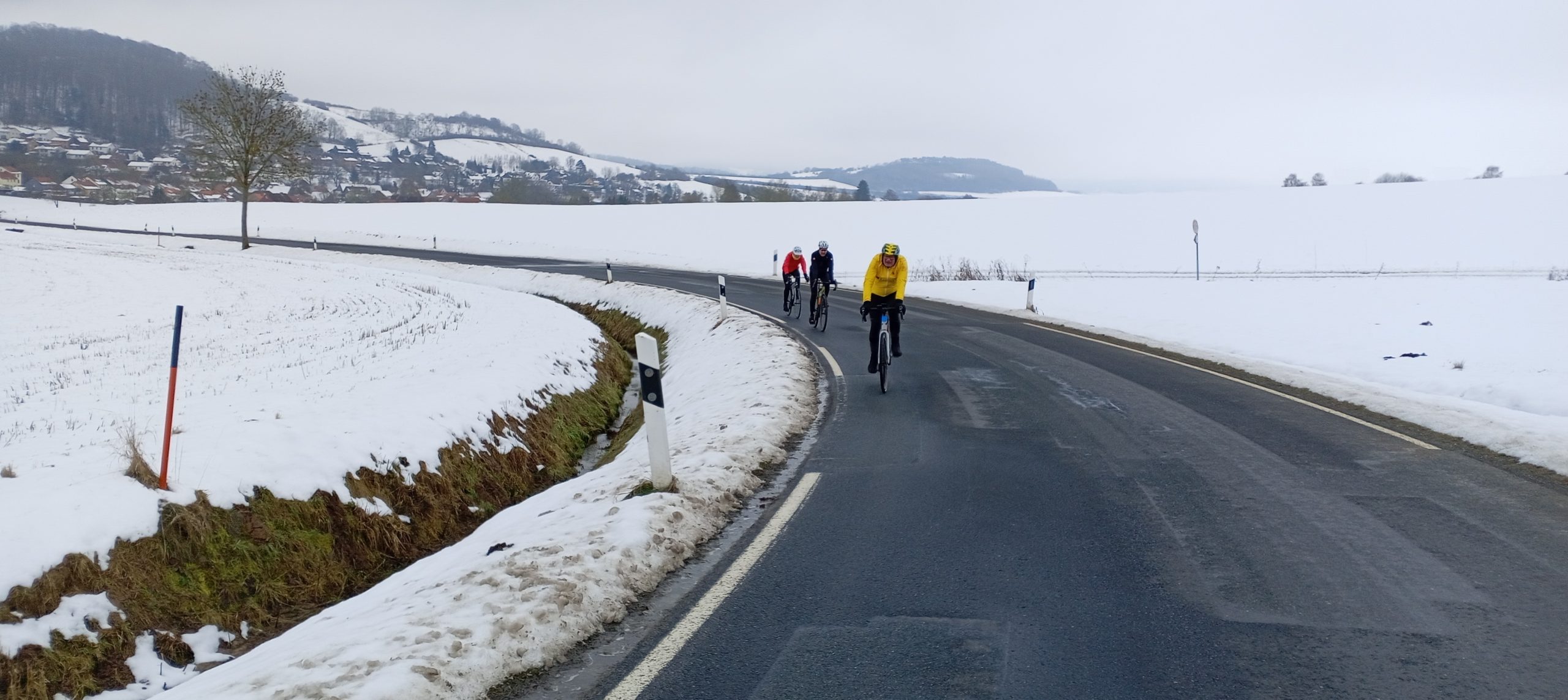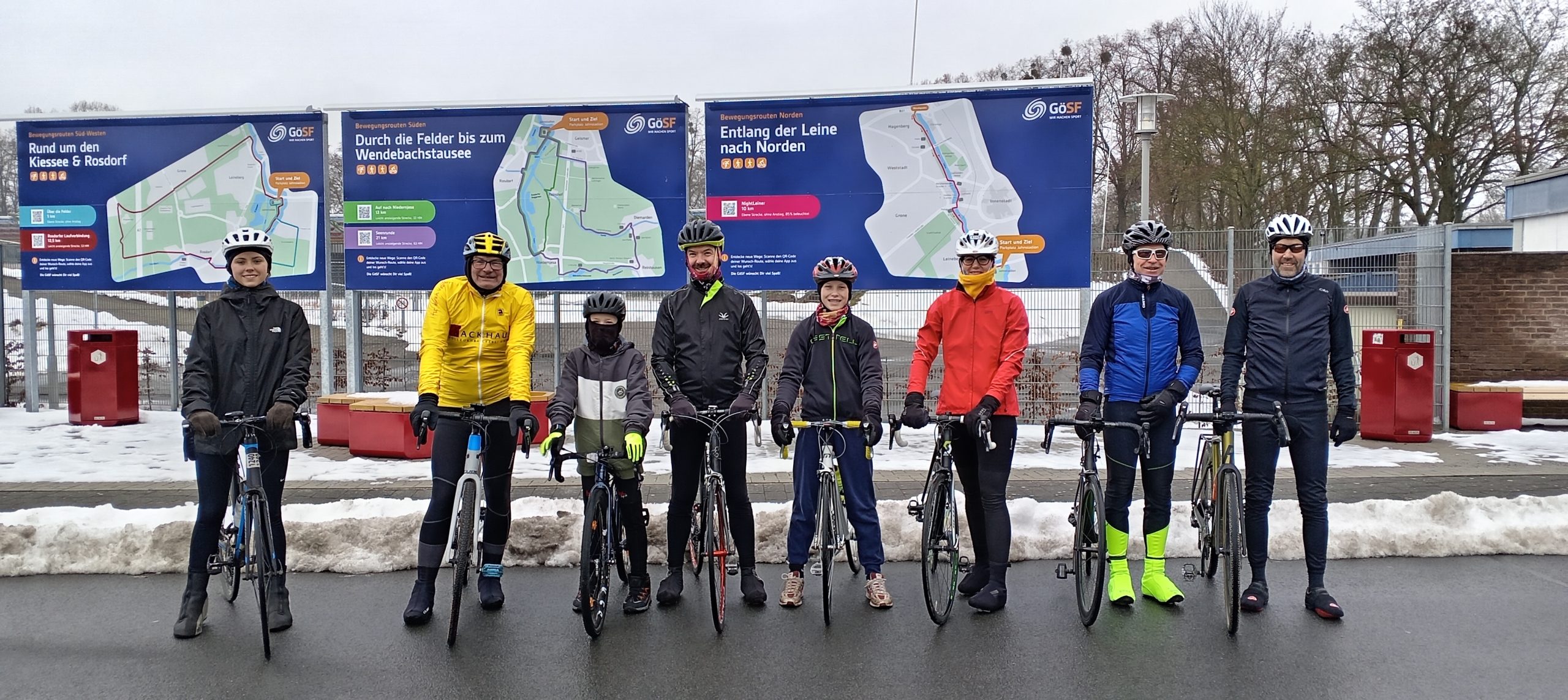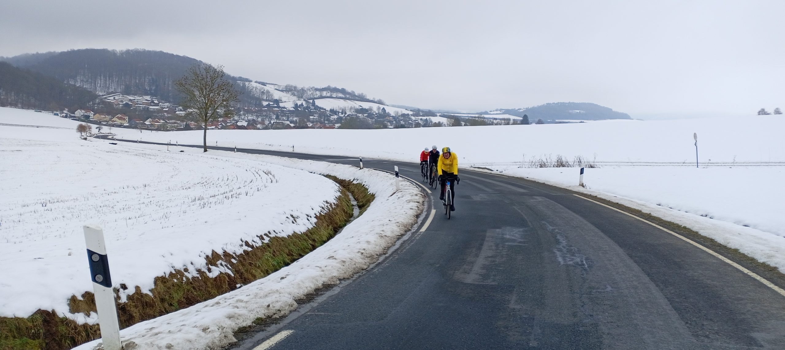 Kaum zittert sich die Thermometernadel über die Null Grad-Grenze sind sich alle einig: „Viel wärmer als beim letzten Mal!“ Und schon beginnt der Übermut, gleich in Rosdorf den ersten Berg mitgenommen und das setzte die Idee für das heutige Training. Moment mal, Berg in Rosdorf?!? Klar, der HamBERG war unsere erste Steigung an der jedeR wieder ihr/sein Tempo gefahren ist. Oben ankommen und den anderen entgegen fahren inklusive, denn zusammen ankommen und Spaß haben, ist das Motto unseres Trainings!