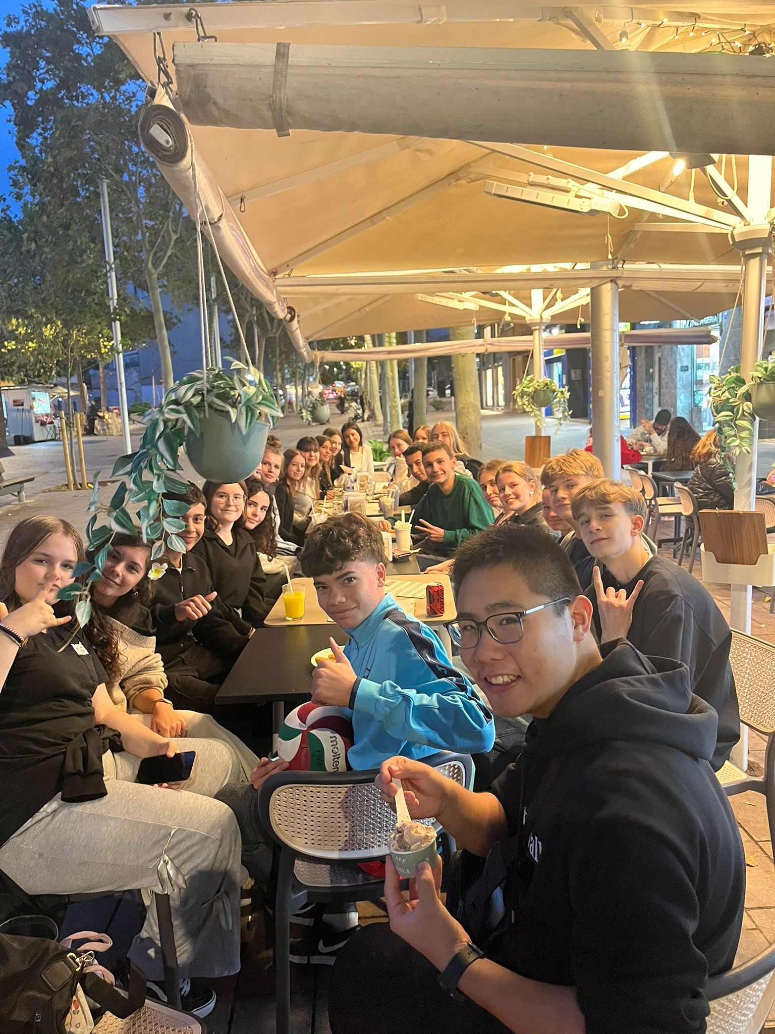 Heute war für uns der erste richtige Tag in einer spanischen Familie. Da die Schule erst um 8:30 beginnt, konnten wir länger schlafen als normalerweise, doch der Schulweg war schon die erste Herausforderung. Ein für Spanien ungewöhnliches Unwetter hat den Schulweg für uns erschwert. In der Schule hat uns schon die nächste Herausforderung erwartet. In der Aula des Institut Bruegers mussten wir nach einem Kennenlernspiel eine kurze Impro-Szene auf Spanisch vorführen. In der Pause ging es für uns zwischen allen spanischen Schülerinnen und Schülern auf den Schulhof und wir wurden freundlich aufgenommen und angesprochen. Danach hat uns eine Rallye durch Gava erwartet, wo wir uns alle Sehenswürdigkeiten angeschaut haben. Unsere Aufgaben bestanden größtenteils daraus, Fotos oder Selfies zu machen. Nach der Rallye gingen wir zu Fuß nach Hause. Als wir gegen 14:15 Uhr Zuhause waren, haben wir einen Film geguckt und gegessen. Danach haben wir uns mit vielen aus der Gruppe getroffen und Volleyball gespielt. Gegen 18:00 Uhr haben wir einen Snack in einem Cafe gegessen, was normalerweise viel zu spät für uns wäre. Anschließend sind wir mit dem Bus zu einem kleinen Einkaufscenter namens Barnasud gefahren. Dort waren wir ein bisschen shoppen und in einer Spielehalle – das hat uns allen am meisten Spaß gemacht! Wieder Zuhause gab es gegen 22:00 Uhr Abendessen. Wir hatten Glück, dass das Wetter nachmittags doch so gut war! Für uns war der Tag sehr abwechslungsreich und aufregend. Wir haben viel über Gavà gelernt und Spaß gehabt. Auch wenn uns manchmal nicht die richtige Worte einfallen, können wir uns trotzdem gut verständigen. Zudem sind alle hier sehr nett und offen. ¡Qué suerte!